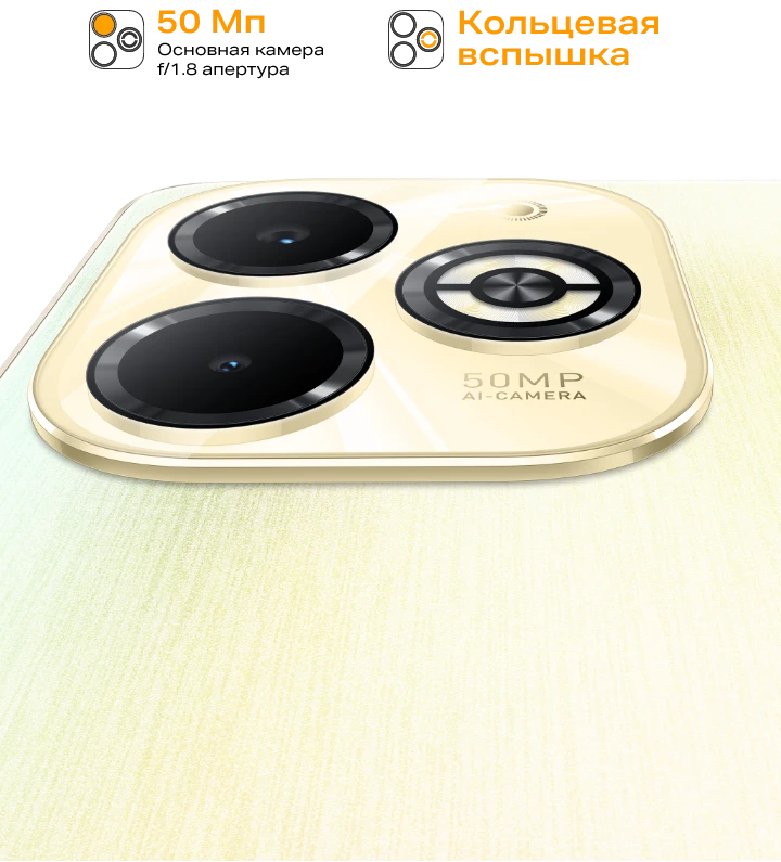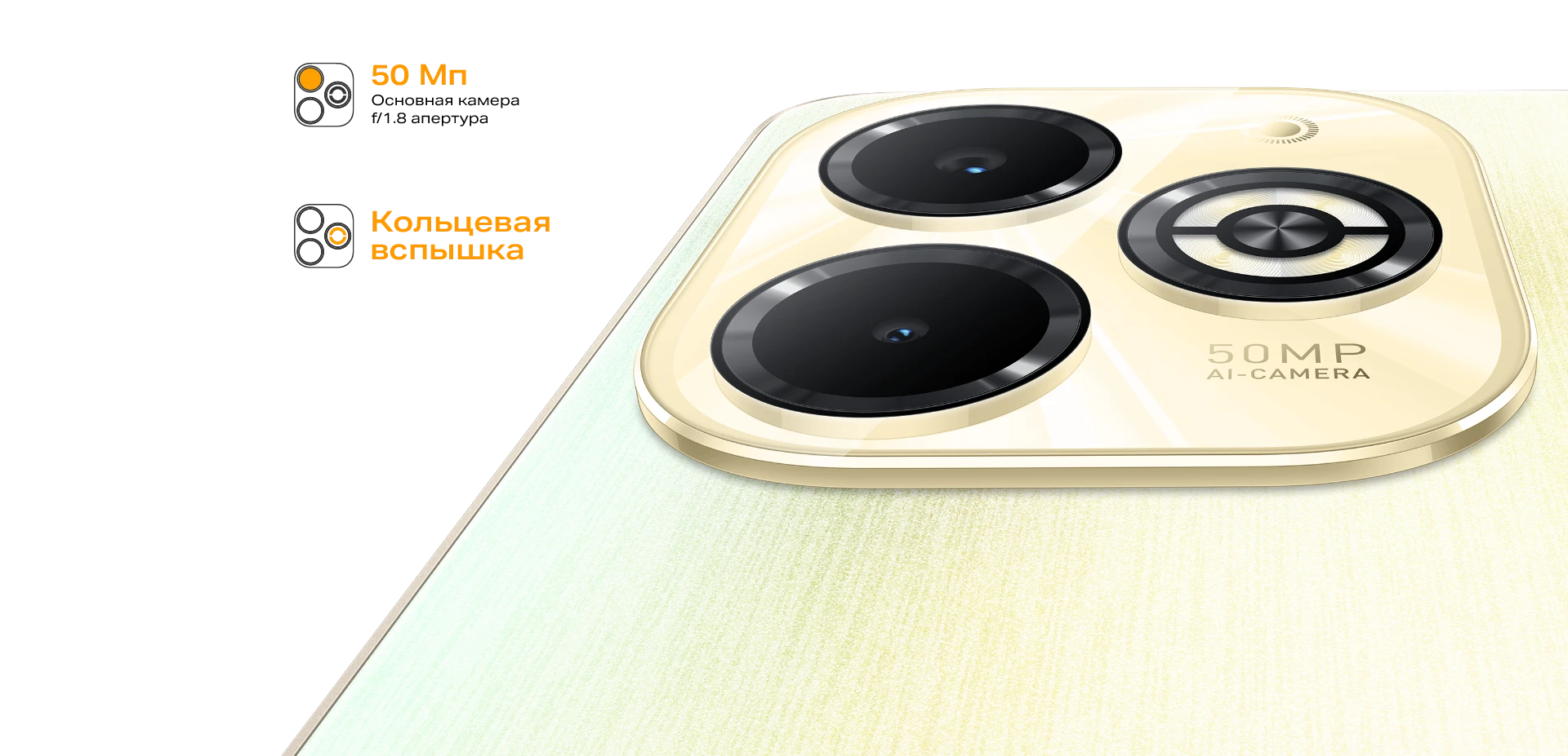 1. 50 МП двойная камера с ИИ и кольцевой вспышкой